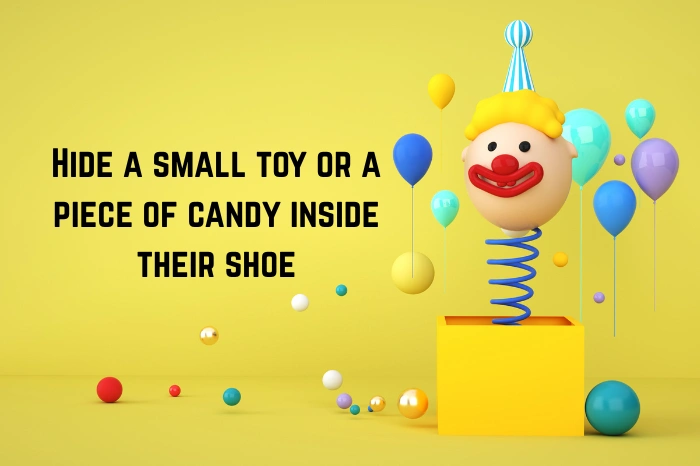 3. Hide a small toy or a piece of candy inside their shoe.