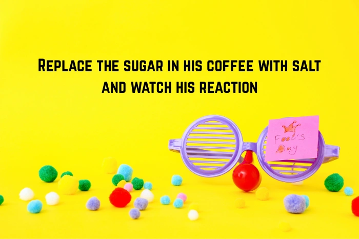 2. Replace the sugar in his coffee with salt and watch his reaction.