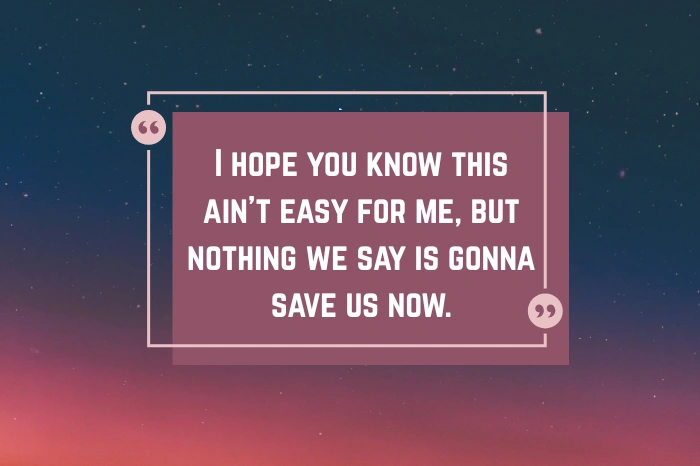 9. I hope you know this ain't easy for me, but nothing we say is gonna save us now.
